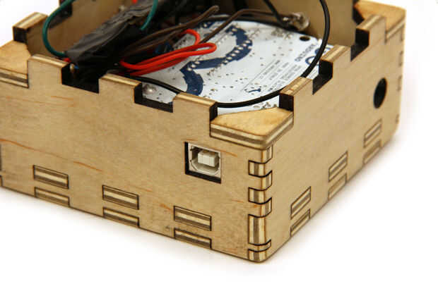 este es un instrumento electrónico que jugó de manera similar a un teclado con algunos divertidos efectos. Un sensor de luz está conectado a la computadora que controla la madera (sonido) de las parcelas. Se puede jugar una escala cromática de C a C