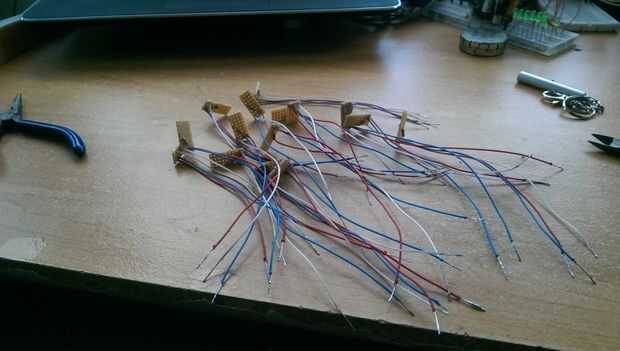 Usé tira de cobre Junta para construir circuitos LDR individuales. Esto es sólo cuestión de preferencia. Puede utilizar su propio PCB o placa tira más grande. Cuidadosamente la soldadura LDR a los cables que más tarde te conectar al Arduino, así que asegúrese de que deja suficiente holgura. "Siempre medida dos veces y sólo cortó una vez"