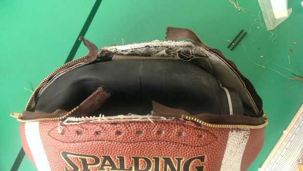 Quitar los hilos y corte la bola. Coser las dos cremalleras en los dos extremos opuestos de la bola.