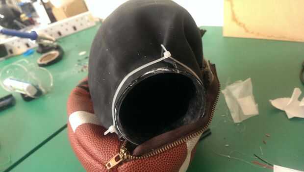 Después de que el pegamento se seca. Infle la vejiga y sumerja en agua. Ver si claros están presentes y arreglarlos.