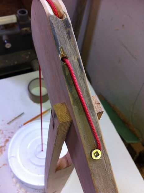 Llevar el cable hacia arriba, pone en la pista de surco e introducir el extremo por el agujero. Cuando el cable está apretado con un buen ángulo, ser capaces de aplicar tensión, asegúrelo con un tornillo en el agujero.