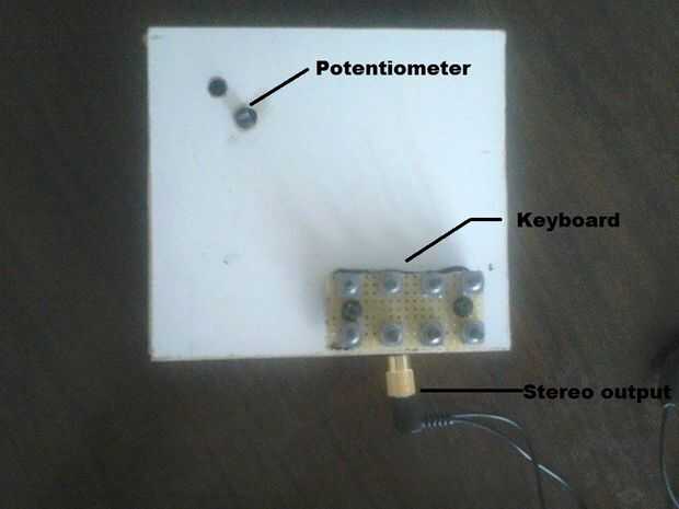 He visto muchos posts sobre timer 555 IC y trabajé con él en la escuela, pero no hacemos una pizca de música que así que hice uno. Lista de piezas está en el diagrama, hice caja por mí mismo, pero puede utilizar la caja de un dispositivo antiguo y he hecho alguna modificación al circuito que añadirá un potenciómetro antes de la línea de botones y resistencias, hay un diodo LED en la salida pero no va a funcionar si hay estéreo conectado.