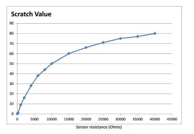 La PicoBoard tiene una resistencia de pull-up a bordo 10KΩ, el convertidor A-d a bordo toma un voltaje de entrada analógico y la convierte en un valor entre 0 y 1023, entonces cero lo convierte en un valor entre 0 y 100. Por lo tanto, las características de entrada de la PicoBoard no son lineales. Consulte el gráfico de valores cero en la foto.
