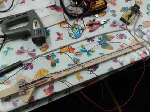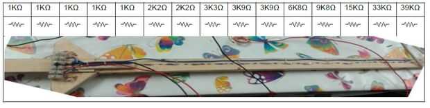 Ahora, tenemos los cables y cadenas de resistencias... en el mundo real estos recoger ruido (.. .sobre de la red) por lo que el valor de cero puede "vacilar" un poco, tan temprano en la fase de diseño, me decidí a "afinar" el instrumento, por la asignación de los valores de cero y luego tomar un promedio entre estos valores para realizar la prueba, en – para determinar dónde el lazo y el anillo son en el puente y traste respectivamente.