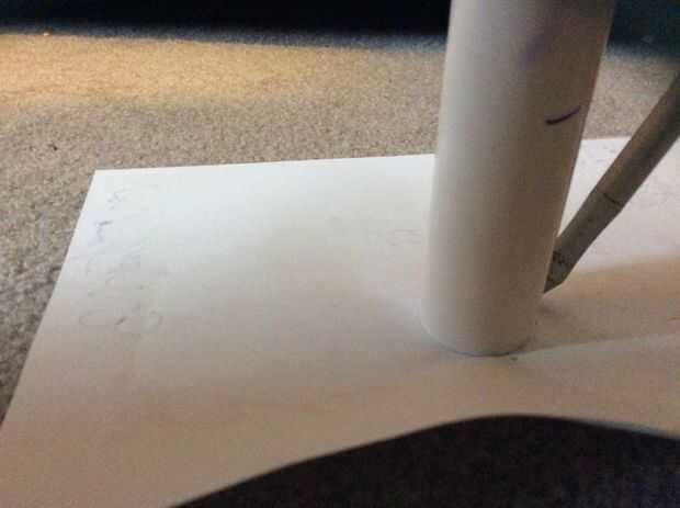 Después de todo de los agujeros taladrados, colocan la base del tubo en el papel y traza alrededor de él