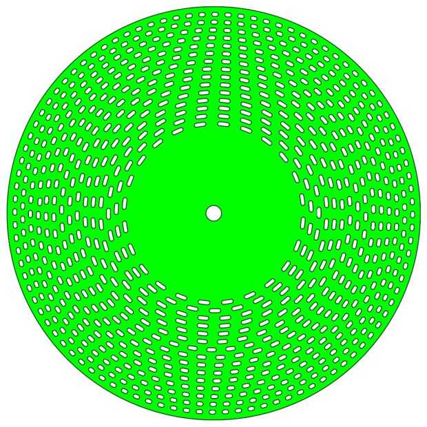 La parte sólo es un poco complicada es hacer el disco que suena, pero si tienes acceso a un láser de corte, esto es realmente muy fácil. Sea creativo en la configuración del disco. El número de agujeros para cada pista del disco determina la nota para esa pista. Cada pista representa una nota en el instrumento. Las formas de los agujeros afectan el sonido (timbre, calidad de sonido, armónicos, etc.). Así usted puede hacer múltiples realizaciones de la misma nota, si desea experimentar con una comparación de varios timbres. Por ejemplo, comenzar por hacer un instrumento que tiene una docena de realizaciones de una nota de "A440" (p. ej. todos 12 pistas en el instrumento que la misma Nota) y luego seleccionar el sonido que te gusta mejor, que es fácil de hacer cuando todas las notas son la misma altura y sólo el timbre varía de pista a pista. Luego realizar un nuevo disco con esa forma de agujero para cada una de las 12 notas diferentes .