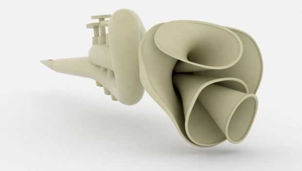 Otra dirección es en el uso de impresión 3d de formas extrañas. Amit Zoran algunos conceptos locos como la trompeta que ves arriba y en TU delft boquillas de saxofón con estructuras aerodinámicas internas. Estos conceptos utilizan impresión 3d ventaja para hacer piezas en partes (dentro de las partes, en partes...). Tal vez podremos hacer todo tipo de instrumentos modulares de esta manera, donde tomar parte trompeta, saxofón de parte y parte de oboe, y convertirlo en un loco obumpophone personalizado. Tal vez podemos incluso ir más lejos y hacer uso de las piezas móviles internas como en esta película: