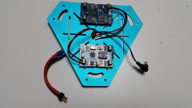 Enrosque el cable de alimentación a través del agujero central en el marco superior y conéctelo a las entradas de energía en los conductores del motor (al lado del conector de Grove), procurando para obtener la polaridad correcta.