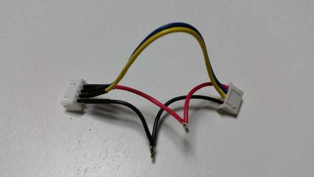A continuación, modificar el cable de extensión de voltaje de batería 3S cortando el GND y el contrario alambre (tensión plena), despojarlos y soldarlos juntos. Entonces puede fijar estos puntos a las entradas de divisor de tensión. Usted realmente necesita soldar estos: Si sólo les tuerza y trate de usar los terminales en el módulo de divisor de tensión para mantenerlos juntos, hay una posibilidad que pueden deslizar hacia fuera, que luego supone un riesgo de cortocircuito, como entonces hay un cable suelto con la plena tensión de la batería detrás de él.