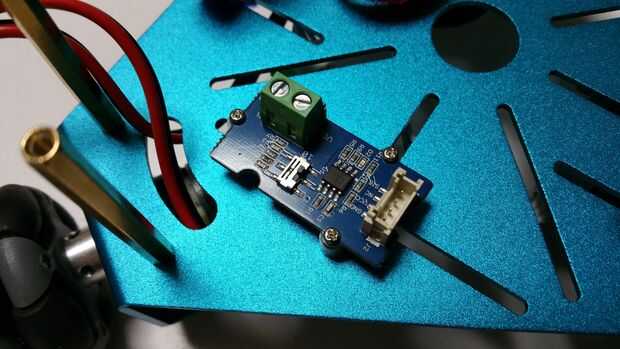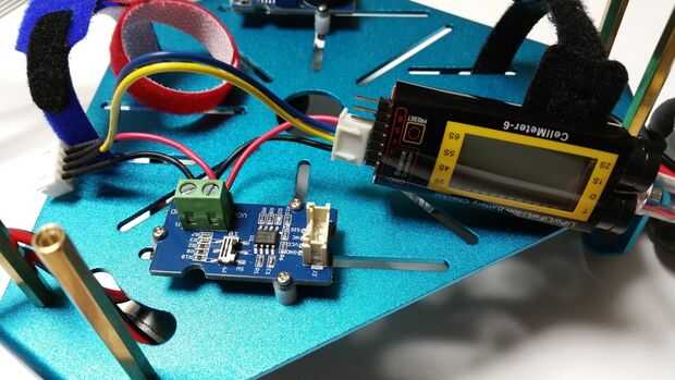 Nota: Lamentablemente me no metía una lectura muy precisa con esta configuración, así que por esta razón (y además de la molestia de tener que soldar el cable) te recomiendo realmente que saltar. Si vas a tener que soldar algo de todos modos puede así reemplazar esta configuración con una red de resistencia simple, que funciona mejor, es más barato y permite medir cada célula, no sólo el voltaje de la batería total. Usted puede hacer uno con un módulo de creación de prototipos de Grove bastante fácilmente (se muestra en la imagen del rover amarillo).