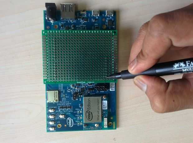 Coloque la placa de prototipo justo por encima de él y marcar la posición de un marcador.