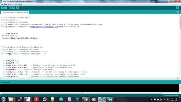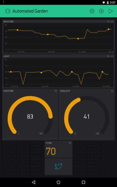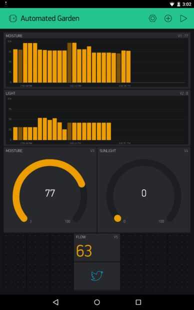 Actualizaciones en el registro (27/10/2015) de datos por WiFi: Trabajo de Blynk App prueba de humedad y sensor de luz. Estoy trabajando en Sensor de flujo y Twiter.