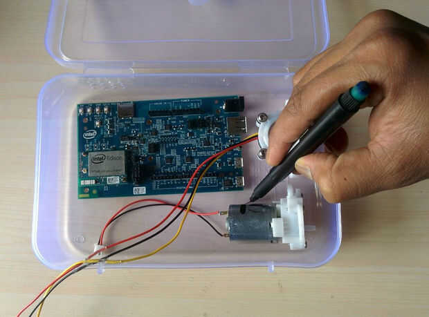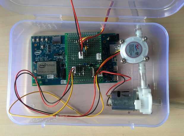 Cortar un tubo de silicona pequeño y conexión entre la descarga de la bomba y el flujo de sensor.