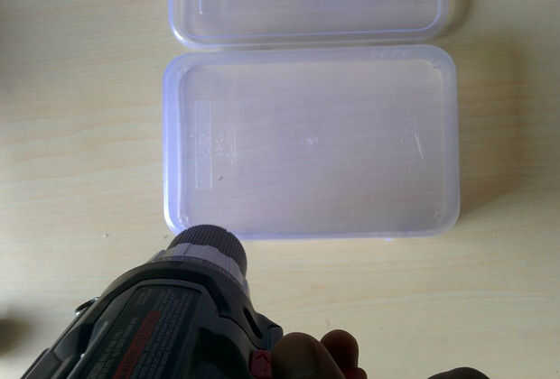 Para que el sistema compacto y portátil, puse todas las piezas dentro de una caja de plástico.