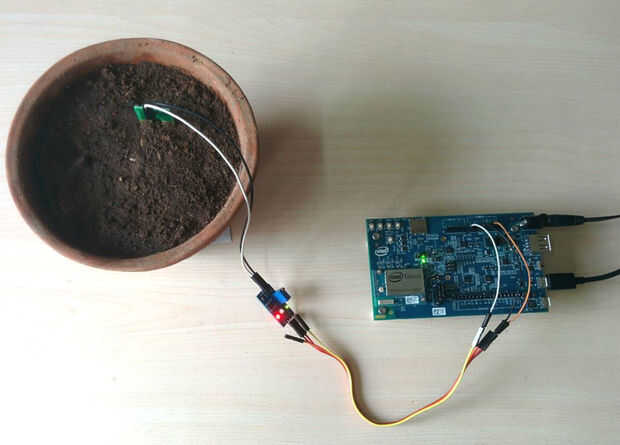 Los sensores de humedad de trabajo se basa en la resistencia del agua para determinar el nivel de humedad del suelo. Los sensores miden la resistencia entre dos sondas separadas dos enviando una corriente a través de uno de ellos y una correspondiente caída de tensión debido a un valor de resistor conocido de la lectura.