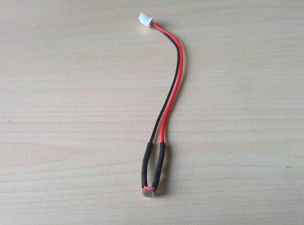 Tomar dos trozos de cables con la longitud deseada y desnudaron el aislamiento en los extremos. Conecte un conector de dos pines JST al final. Usted puede comprar el conector con los cables también.