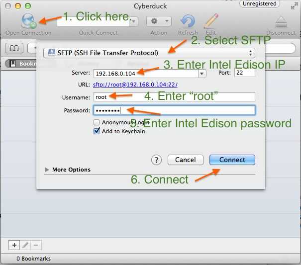 2. Conecte a su Edison Intel por SSH con Cyberduck y Terminal.