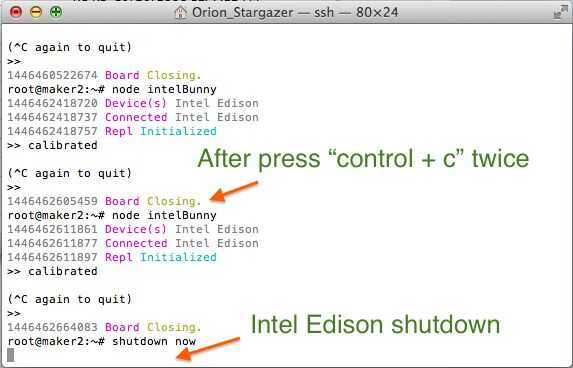 • Si usted quiere apagar le tipo Edison de Intel «apagado ahora» y pulse Intro.
