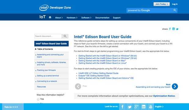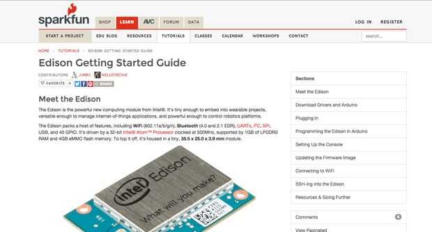Usted puede encontrar más información sobre la configuración de nombre de Edison, contraseña (es necesario para SSH) y WiFi en la Página Web de Sparkfun.
