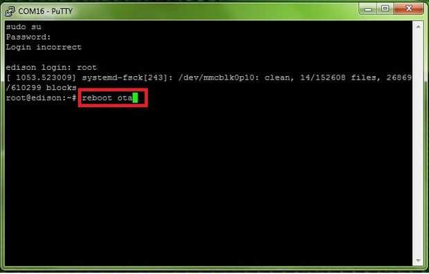 Esto reiniciará al Edison y comenzar el proceso de actualización. Esto le llevará pocos minutos.