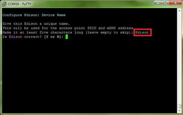 Después de le pedirá a dar el nombre único de la Junta. Nombre de mi tablero de Edison.