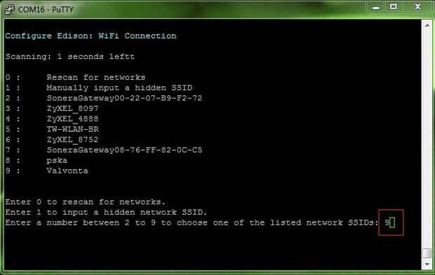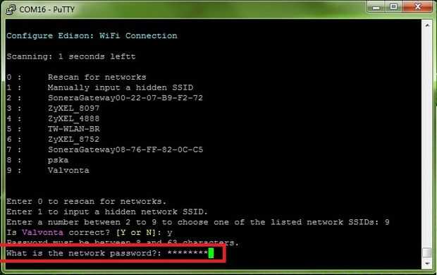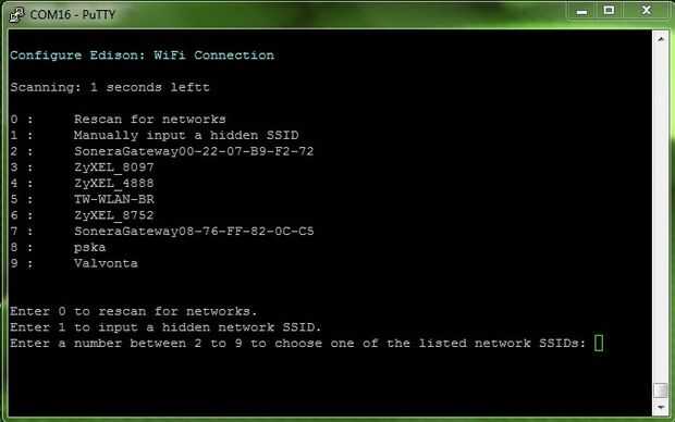 Edison le pedirá que escaneará para WiFi. Presione Y y entrar.