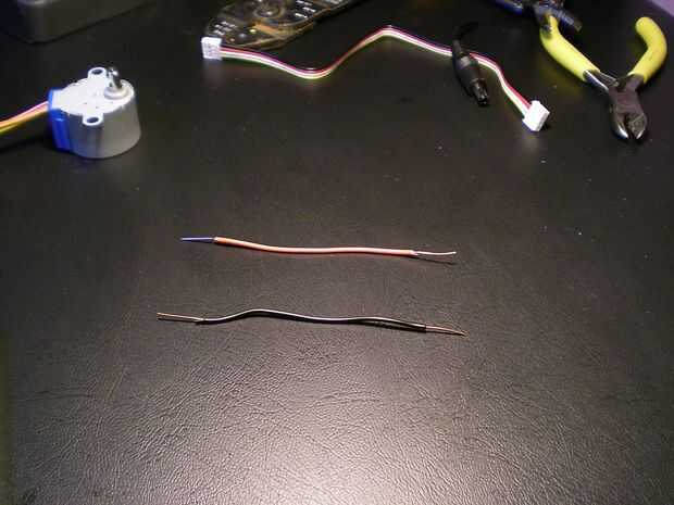 Cortar dos tramos de cable de núcleo sólido y tira de ambos extremos. Estos serán los conductores para la alimentación del motor.