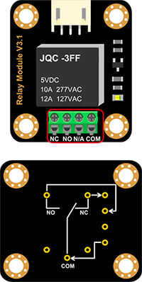 Hay cuatro conexiones de este módulo de relé, que es COM(Common), NO (normalmente abierto), NC (normalmente cerrado), N/A (no aplicable)