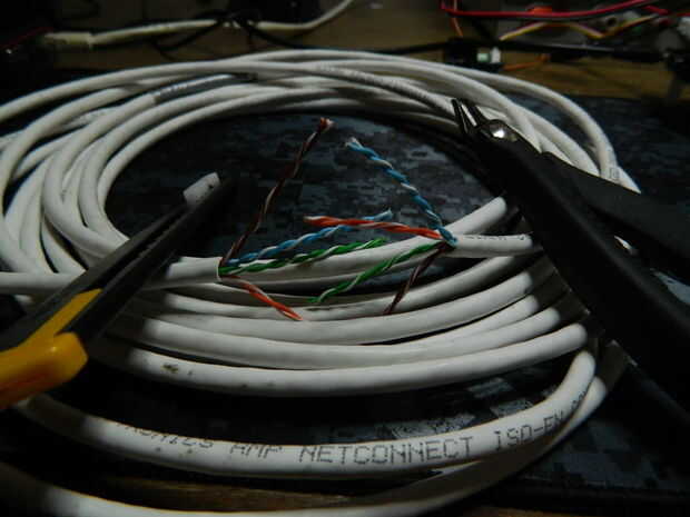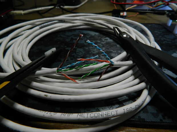 El cable de elección es el cable estándar de Ethernet CAT-6. Sobre todo porque dentro del cable hay 4 pares de cables en el interior. Haciendo el cable mejor usar ya que necesito muchos cables en el paquete compacto.