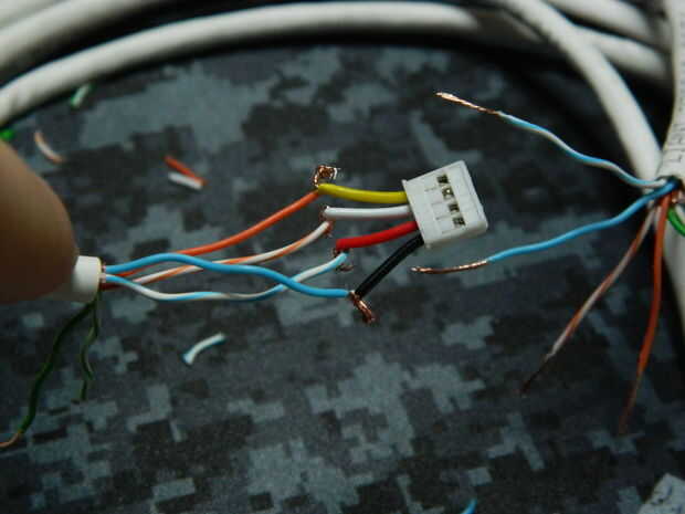Pele los cables y quitar un par de ellos, ya que no son necesarios para este proyecto.