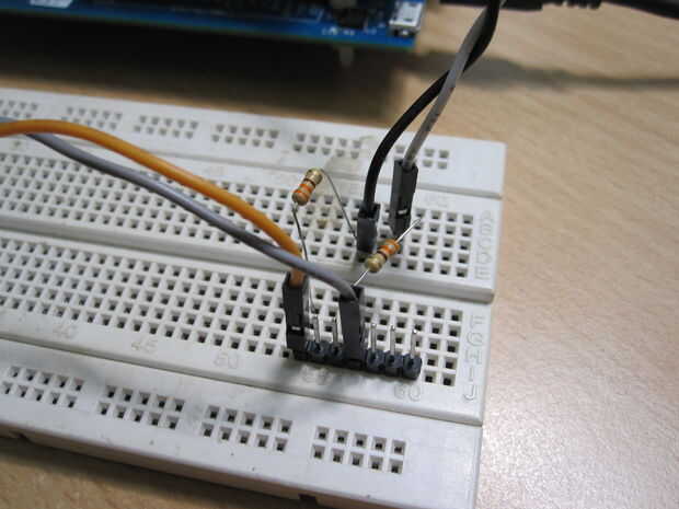 -Hay dos opciones: ajustar la tarjeta de expansión a nivel de lógica de 3v3 o insertar las resistencias entre la conexión I2C.