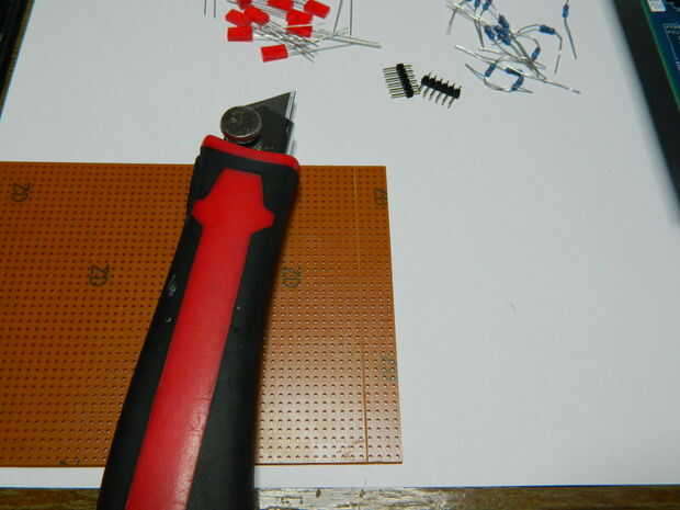 I utiliza un cuchillo para cortar el tablero y ajusta el resto con la mano. La cuchilla ayuda a la Junta para desde el lugar correcto.