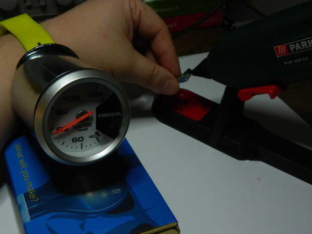 En el segundo ejemplo medir temperatura de pistola de pegamento caliente.