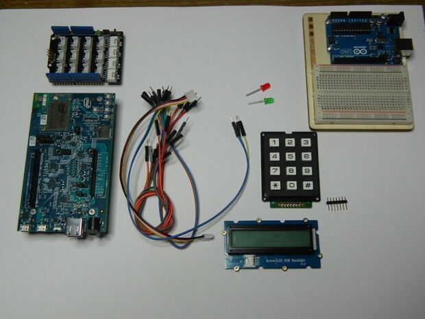 Necesita Intel Edison (básicamente cualquier placa Arduino debe trabajo.), dos led, algunos hilos, pantalla LCD y un teclado.