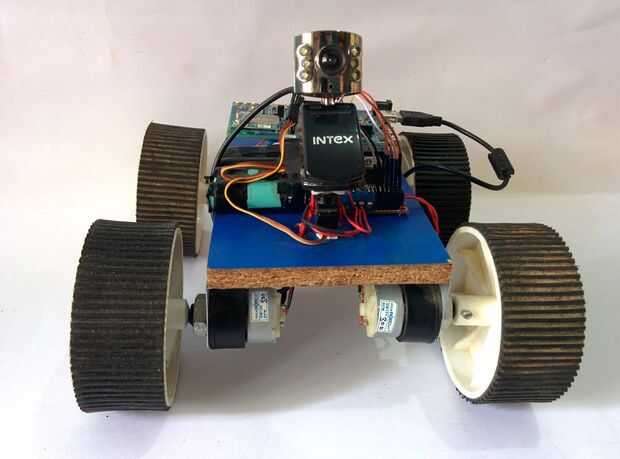 Este robot puede ser controlado a través de WiFi o Bluetooth, puede grabar video y corriente a internet, tenía un par superior (puede llevar cargas de tirón) y tiene un chasis todo de terreno.