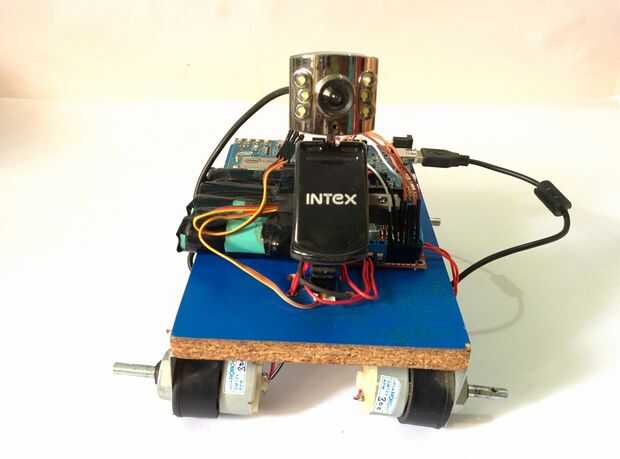Usted necesita montar la cámara USB en la parte superior del servo para que a medida que el servo gira obtendrás un videos de ángulo más amplio. Puede utilizar pegamento caliente para unir el servo engranaje y el fondo de la USB Web Cam. La cámara se conecta en el conector USB de la Edison Intel también puedes corta el cable de la cámara fotográfica de USB si es demasiado largo. También se puede utilizar una cámara IP si no tienes una cámara web, en el último robot que utiliza un teléfono móvil para transmitir video a un navegador web en el Arduino no es lo suficientemente potente como para manejar un flujo de vídeo.