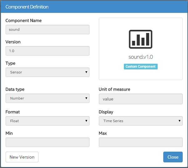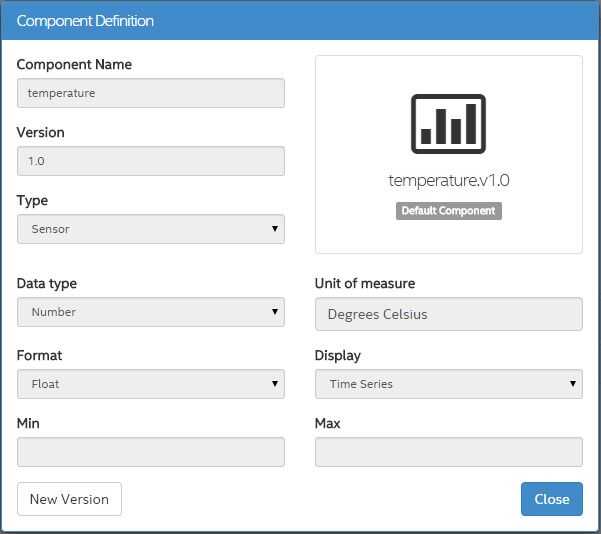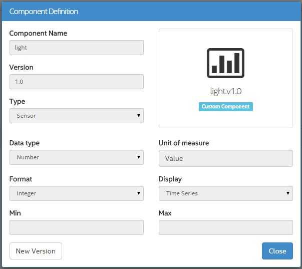 En primer lugar encontrará todos los componentes posibles en su Catálogo que puedes encontrar en Dashboard Analytics IoT. Hay tres sensores estándar de registrado: