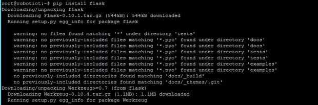 La solución el problema señalado por el cartel original. Prefiero descargar la herramienta de configuración y poner en un dispositivo usando scp o filezilla. Usted puede elegir lo que quieres en este momento. (Pip es el gestor de paquetes para python, que plantea la pregunta: por qué no es incluido. Por supuesto puede instalar manualmente los paquetes que hablar por debajo, pero con pip es un proceso mucho más fácil, más suave. Además, usted sabe, gestión de paquetes es que las cosas debían hacerse.) Instalar el framework de matraz: tipo pip install flask . PIP es un gestor de paquetes de python que se encarga de instalar todas las dependencias que necesita para ejecutar el frasco.