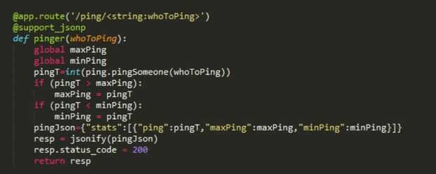 El ejemplo de ping es muy similar a los ejemplos de memoria y analógica pero toma un argumento en la url como esta: https:///youredisonsipaddress /ping /hostnameyouwanttoping