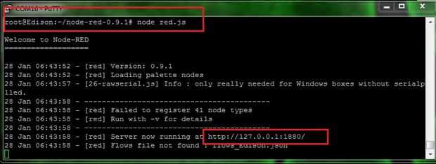 Después de hecho esto ir a ~/node-red-0.9.1 y el tipo" nodo red.js " para iniciar el programa