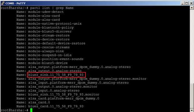 Usted verá un montón de diferentes nombres surgen. Buscar hasta encontrar uno que es similar a esta, sino con su distinta ID de Bluetooth (igual que lo que se utilizaba anteriormente). Usaré el ejemplo de bluez_sink.11_75_58_F9_79_93. Para hacer este dispositivo el fregadero predeterminado, escriba el comando siguiente: