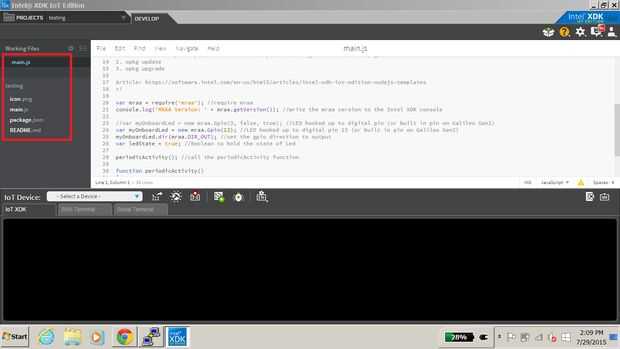 En el proyecto de Intel XDK, todo, desde el archivo main.js reemplazar con el código en GitHub para main.js. Lo mismo para package.json.