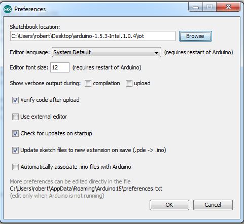 3. cambiar la ubicación de sketchbook a donde pones el zip extraído / github clonar en el ide de arduino.