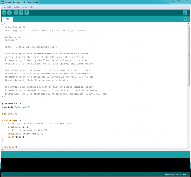 Ahora para comprobar el arduino IDE está hablando a la Edison,