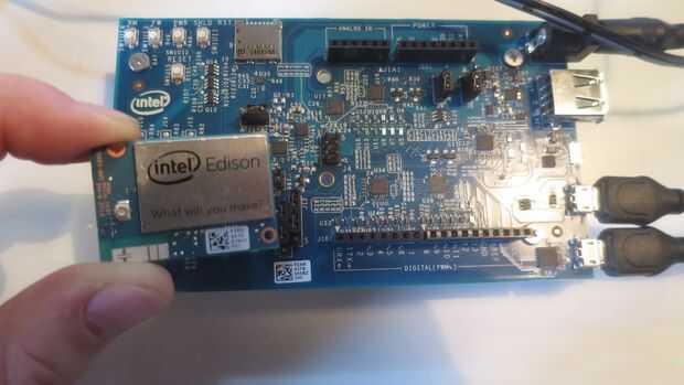 -luego tomar el módulo de Edison y el clib en la esquina izquierda buttom con el código de barras