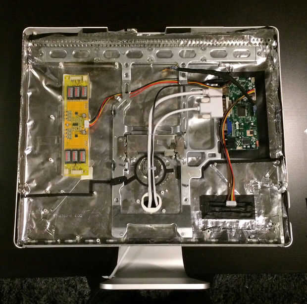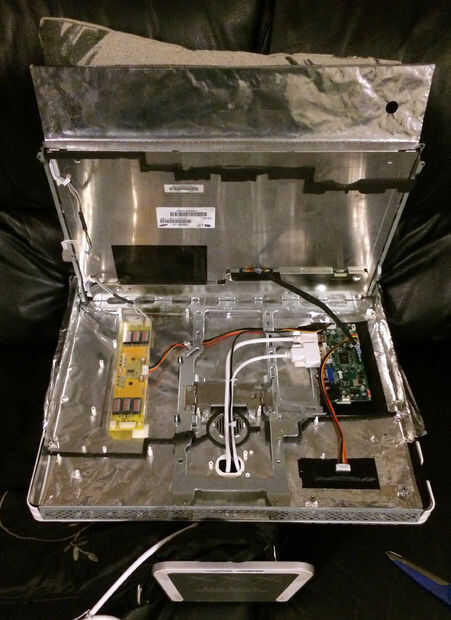 varios cables y alimentación a través de ellos a través de la energía anterior en corte. Yo también aislado bajo el tablero de conductor del LCD, ya que era una placa de circuito estimada. El inversor vino contenido dentro de una caja de plástico transparente. Como con la configuración original, el fondo inversor cables y cable LVDS sólo podrían ser Unidos con la pantalla en lugar.