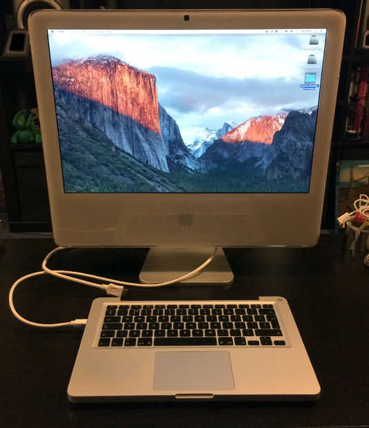 Luego volver a montar el iMac, coloque la malla, reparación de cinta EMI luego instalarle el frente! Ahora funciona a la perfección con la salida de Mini DisplayPort de mi menos de pantalla MacBook Pro y tengo un cable HDMI disponible para conectar cualquier otro dispositivo. Lo único que no era cambiable era el brillo CCFL, pero usando el panel de preferencias Pantallas soluciona esto satisfactoriamente para mí.