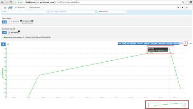 Volver al tablero de instrumentos de análisis y seleccione gráficos en el panel de navegación. A continuación, marque las casillas al lado del dispositivo deseado y componente para ver los datos recientemente enviados.