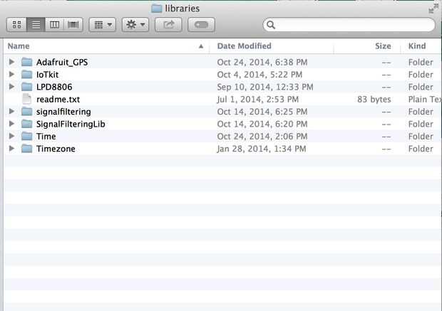 - Abra otra ventana del Finder. Desplácese a la carpeta de bibliotecas de la IDE de Edison. Si no hay ninguna carpeta de las bibliotecas, crear uno con ese nombre.