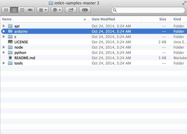 - Seleccione el archivo zip de IoT recientemente descargado. Debería llamarse a iokit-muestras-master. Haga doble clic para abrir.